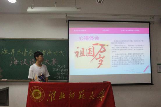 决赛现场,参赛选手们精心准备,用PPT向大家展示海报设计的魅力。作品紧扣主题,内涵丰富、寓意深远,最终,来自美术公司18级服装与服饰设计专业的刘国君同学以其独特的创意和解说风格获得一等奖。